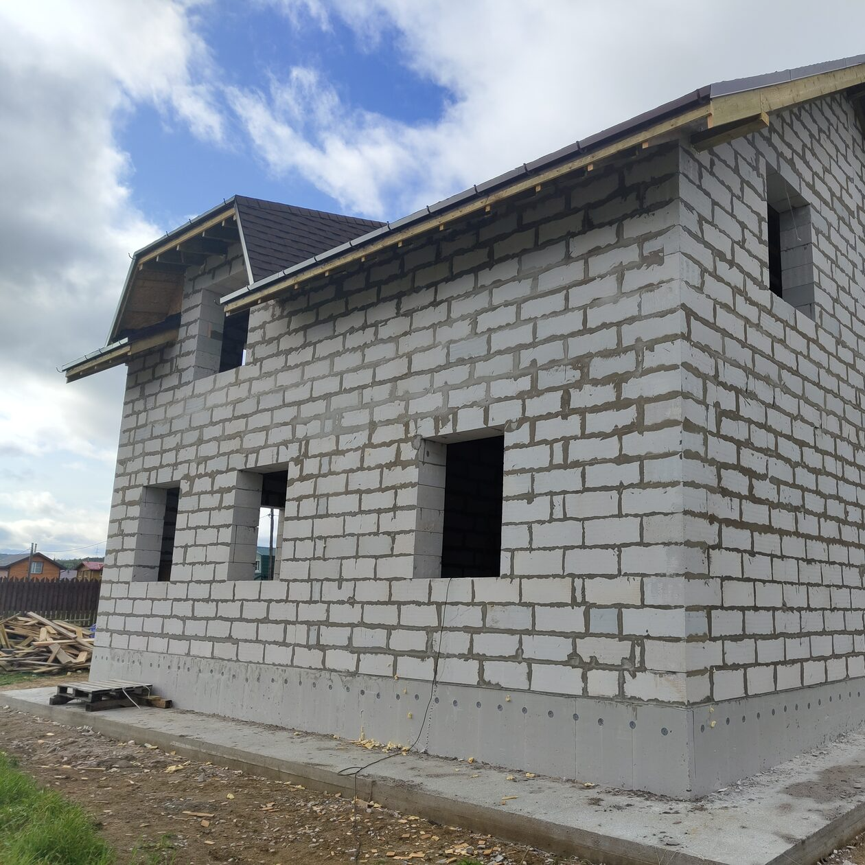 Отсутствие мостиков холода: В отличие от каркасных конструкций, где стыки и деревянные элементы могут пропускать холод, газобетонные блоки монолитно удерживают тепло.